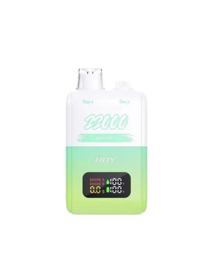 The iJoy SD22000 Rechargeable Vape comes with a dual tank system, offering an impressive 22,000 puffs per device. It has a smart screen designed for monitoring juice and battery levels, adjustable power output, and numerous other features.