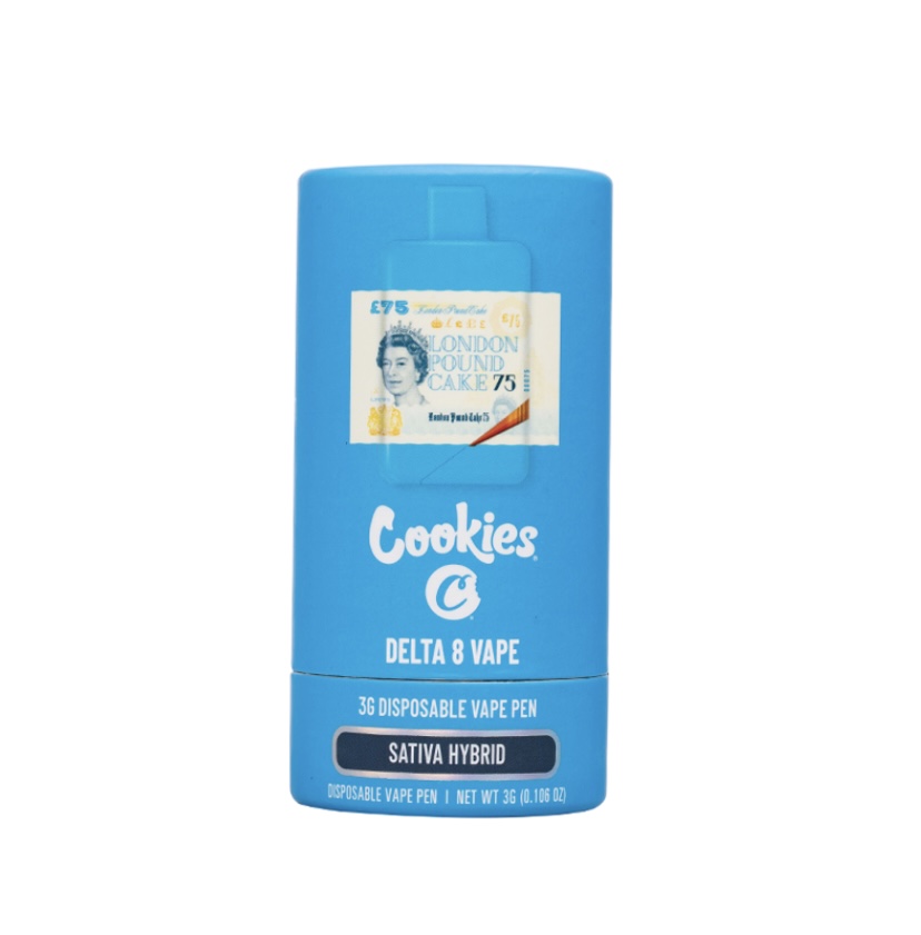Check out the London Pound Cake 75 (Sativa Hybrid)-Cookies Delta 8 Disposable, offering 3 grams of delta 8 cannabinoids with terpenes for a delicious full-bodied vape to uplift the senses.